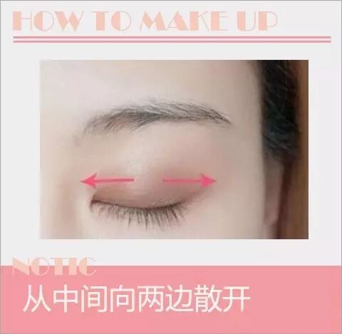 在眼窝的部位,可以选择棕色眼影刷进行打底,顺序是从中间向两边散开。