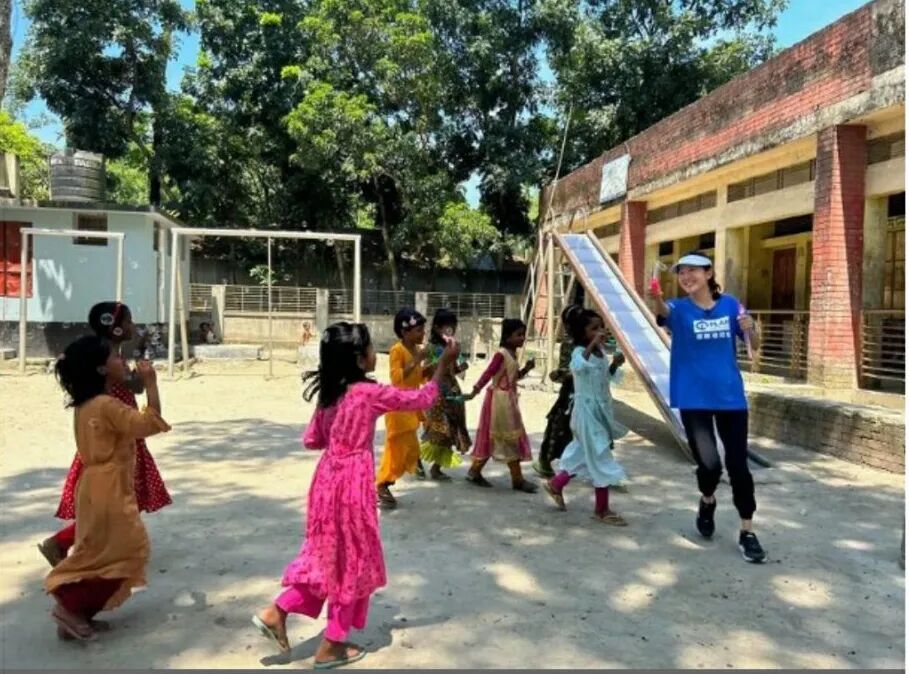 见到佢同当地嘅小朋友一起玩
