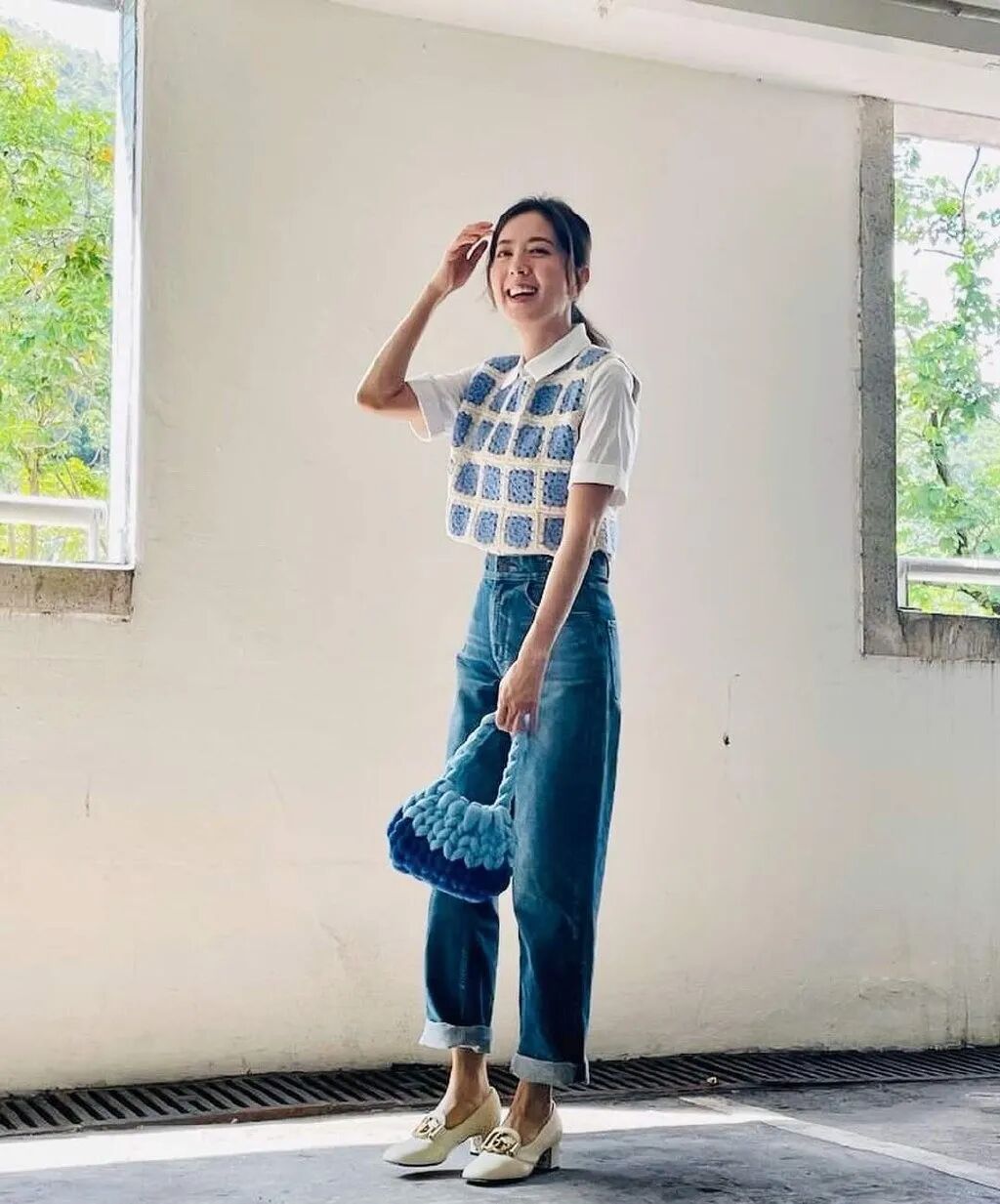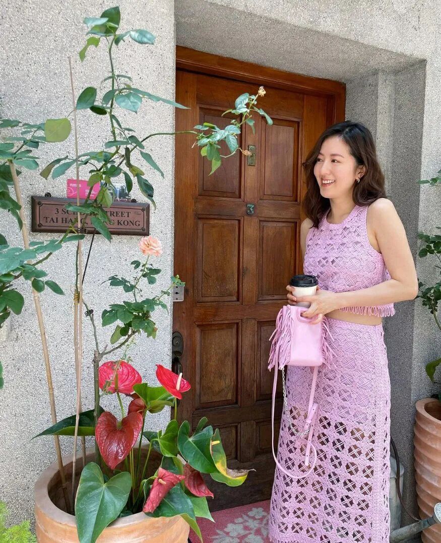 然后带住自己亲手织嘅手袋