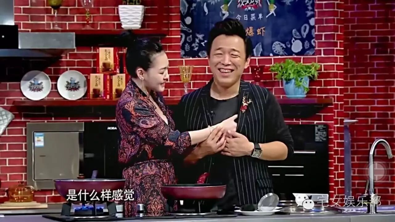 比如做菜时突然被S搂住,他虽然尴尬地笑,但脑门和嘴皮子都转得快,调侃看这个节目能让家庭和睦,“如果每个家庭老公在做菜时被老婆这样抱着”,说到这又调皮,“恐怕每个菜都要糊了!”
