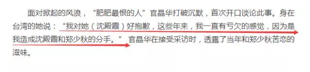 对于这段婚外情,就连曾经的“插足者”官晶华也表示“愧疚不已。”