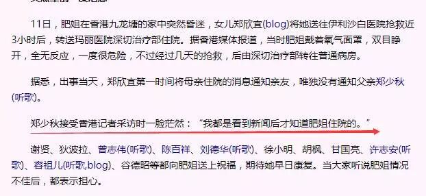 只不过是“看到了新闻之后才知道其患病”,因为女儿郑欣宜通知了所有人,唯独没有通知他。