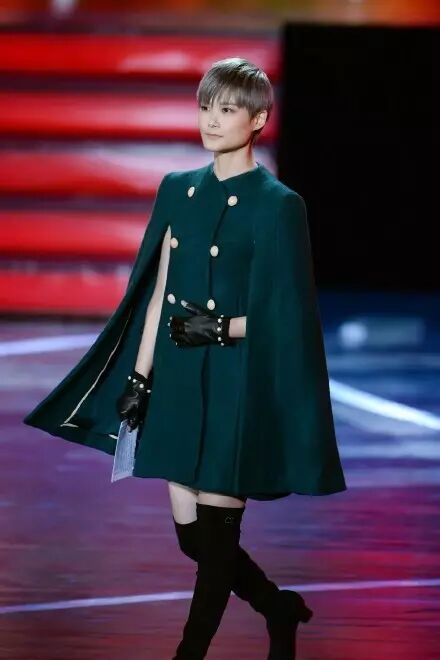 时尚风向标春春在前几天的电影节上,穿的也是一件开袖斗篷外套,再搭配一双黑色过膝靴,原本就两米的长腿更是无处安放了。