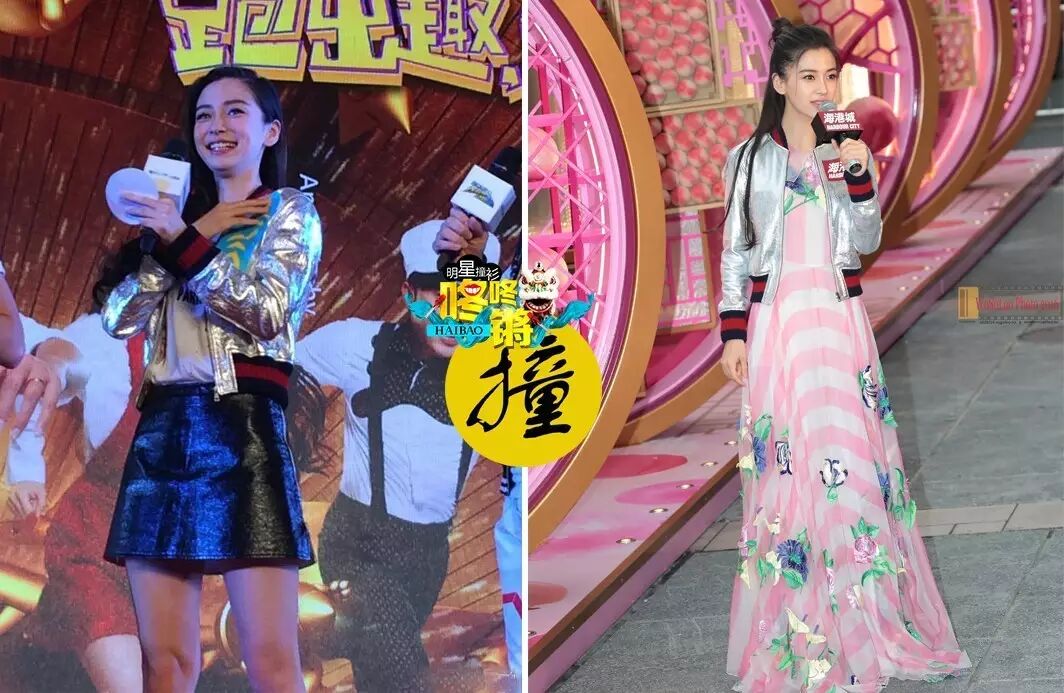 Angelababy身穿银色运动夹克出席《奔跑吧兄弟》第4季发布会。比较起上次的夹克+蝴蝶裙混搭,这次搭配的的白色T恤和黑色短款A字皮裙,让误入歧途的教主夫人又变回了小娇妻。