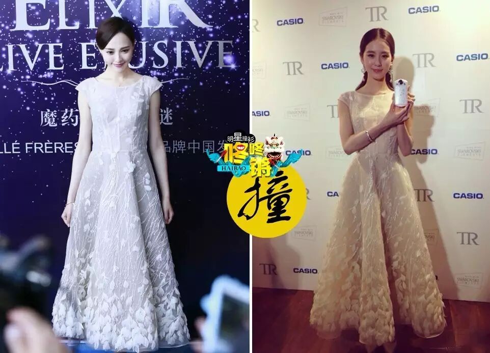 本月,唐嫣身着印花长裙亮相法国婕珞芙(GELLÉ FRÈRE)中国发布盛典。不料,被机智网友扒出与三年前的刘诗诗撞衫!