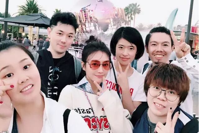 (秦岚和员工一起旅游)