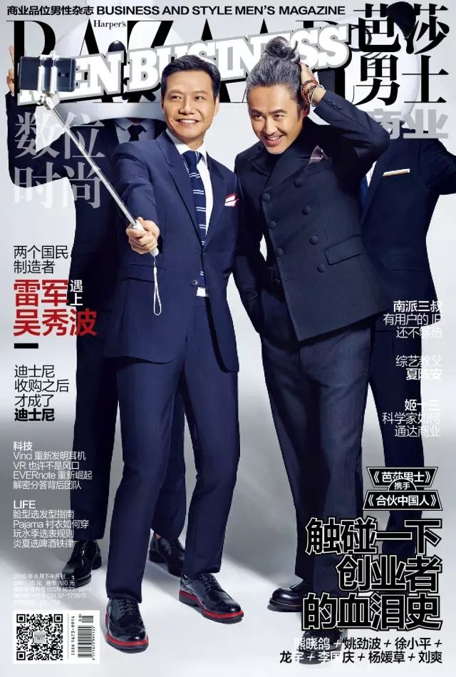 在诸多企业家大佬中,“劳模”雷军的打扮一直都显得比较随意,并不刻意修饰自己,不过最近,他和吴秀波一起,为商业时尚杂志《芭莎男士》拍摄了一组照片,瞬间变身型男。