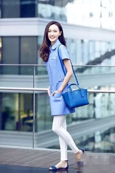 浅蓝色上衣撞色亮蓝色包包高级的不要不要的,大牌感十足呐。