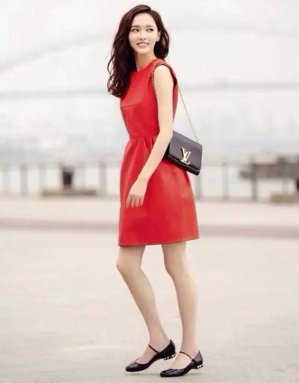 LV的包包唐嫣是非常热衷,不然不会连着出现两次哦。大红色连衣裙搭配黑色玛丽珍平底鞋,文艺又复古。