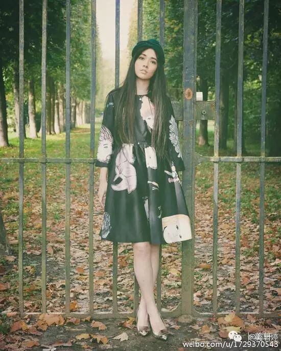长发飘飘的郭碧婷延续一直以来文艺优雅的风格,身着复古印花长裙。在树林中或以叶拂面,或回首翘盼,或目光澄澈直面镜头,俏皮可爱的绿帽子将她装点得犹如森林中的精灵。