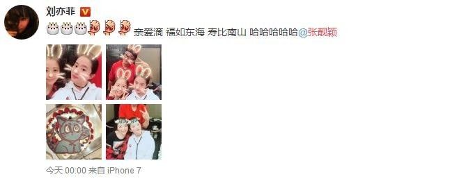 00:00,看来好姐妹刘亦菲为了做第一个给张靓颖送祝福的人,掐准了时间,贴心至极。
