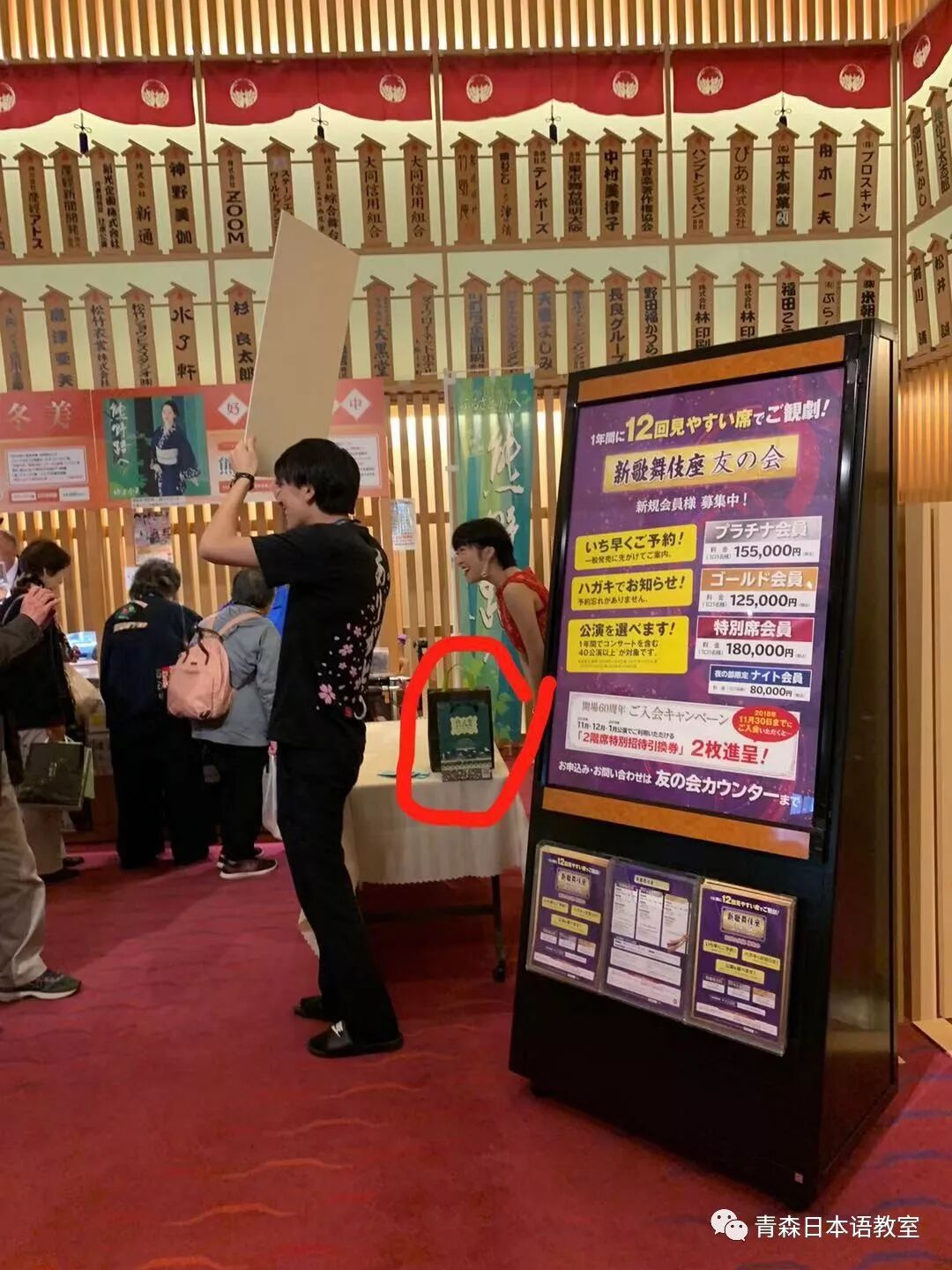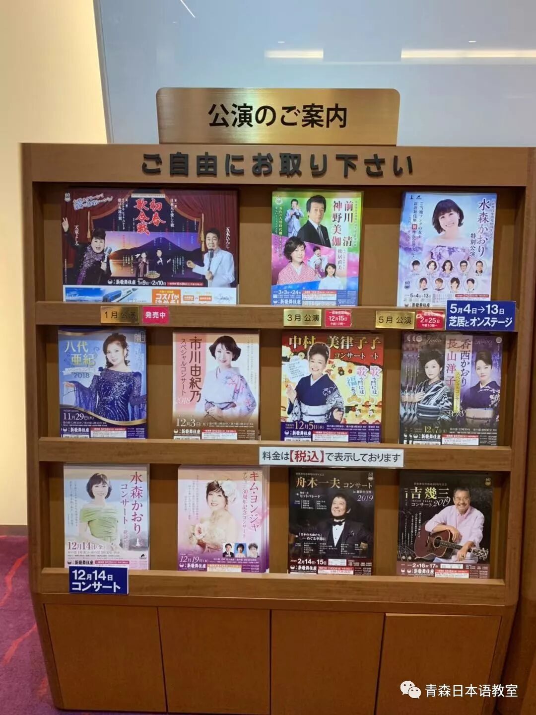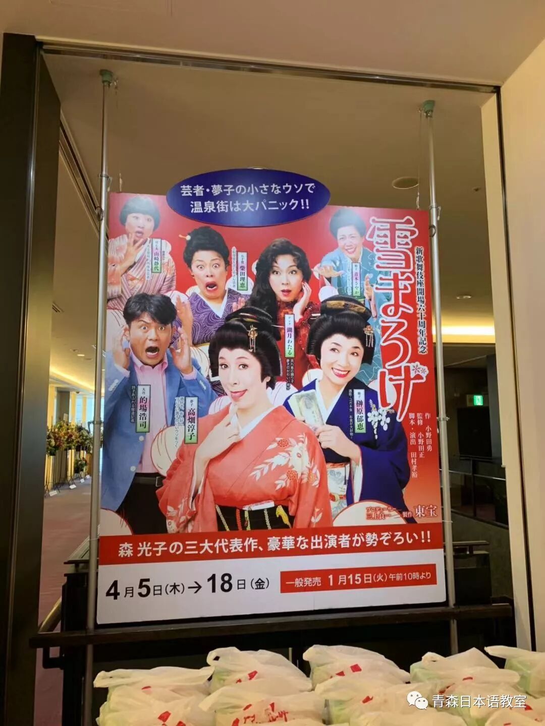 拍完照后,我乘坐电梯到达位于大楼6层的新歌舞伎座。公演实际开始时间是12点整,11点15分可以入场。我到达6层时应该是10点20分左右,门口主要是工作人员和贩卖便当的人。该层的走廊里到处都是熟悉演歌歌手的演出预告。