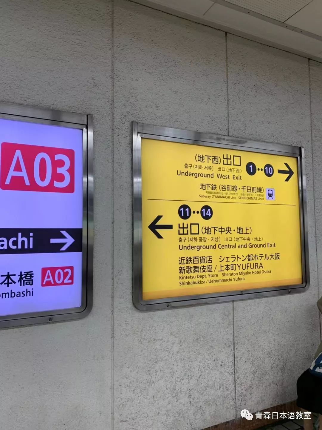 出站后,沿着扶手电梯上去就是大阪新歌舞伎座。
