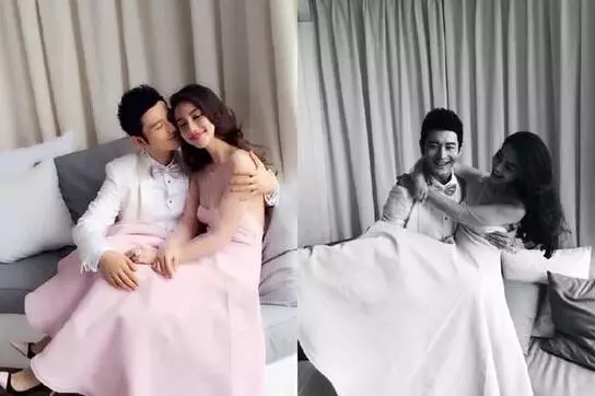 6月8日消息,据台湾媒体报道,黄晓明和女友Angelababy交往5年,在5月27日(谐音我爱妻)领证互许终生。自两人公开深情相视的甜蜜大片后,又有网友在微博贴出夫妻俩拍照当下的可爱互动,Baby甜笑坐在老公身上,脸上洋溢着幸福笑容,最后还玩起公主抱,现场充满着粉红泡泡的氛围。