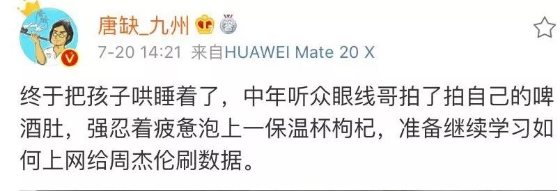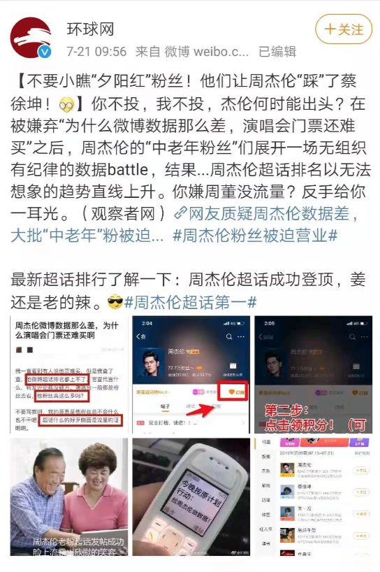 7月20晚,“被迫营业”打榜的周杰伦“中老年”粉丝,