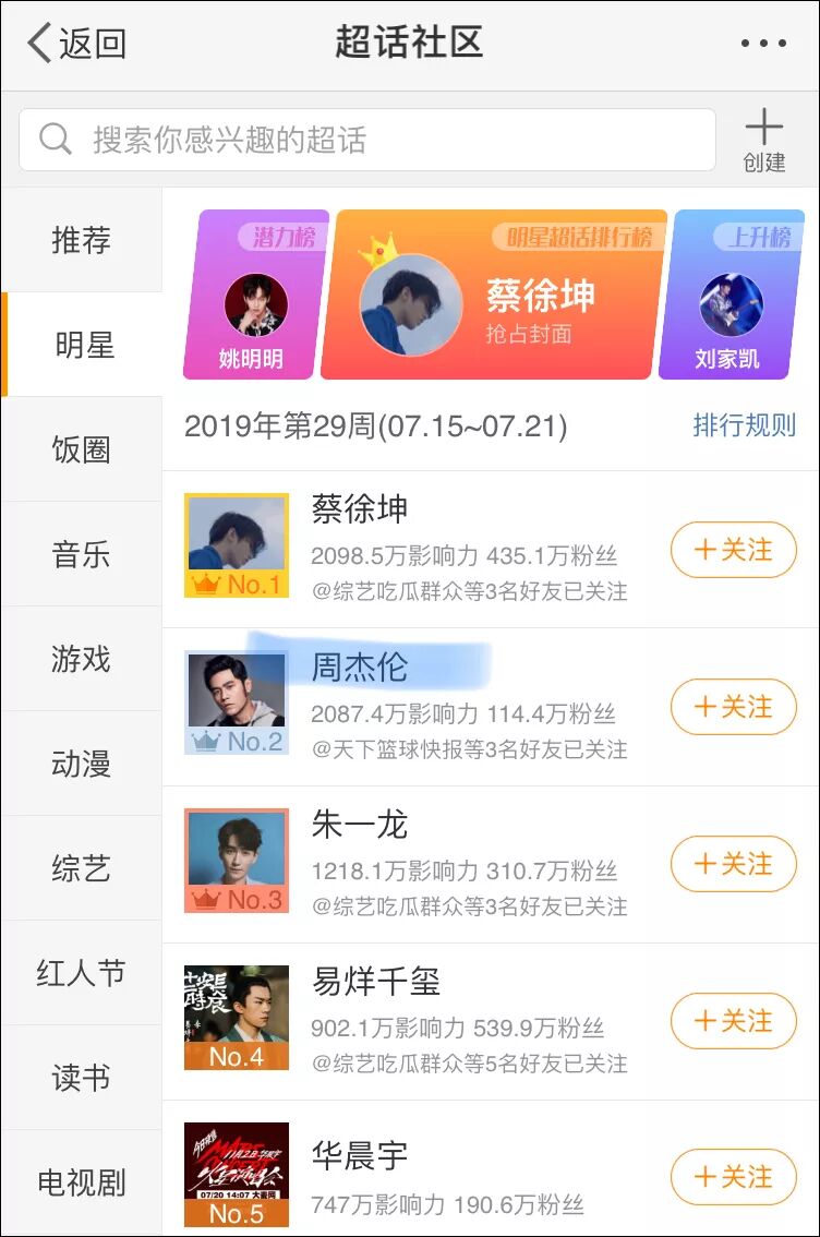 周杰伦超话力压蔡徐坤登顶,不少粉丝表示