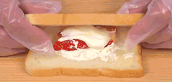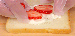 出去野餐带上水果三明治配咱们的牛奶最棒了,拿来当早餐也可以很快速的做好下面的动图快看看吧!