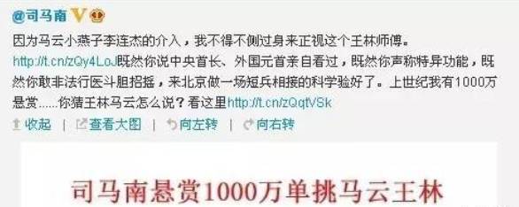 之后科学学者司马南为了打倒王林,竟在微博悬赏1000万人民币,只希望王林能来北京做一场科学实验。。。