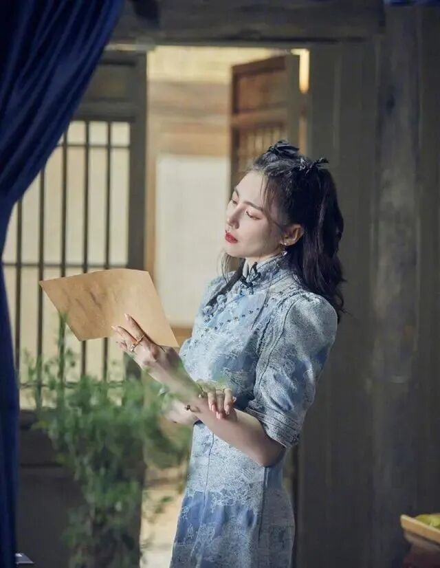 衣服穿上去的气质不仅取决于女生的身材,还取决于裙子的版型。牛仔蓝的面料点缀有白色的印花,看着真的很是可爱又减龄,旗袍的袖子还带有一些泡泡袖的版型,无疑使得这种气质看起来更加明显。