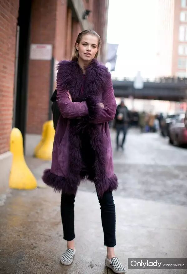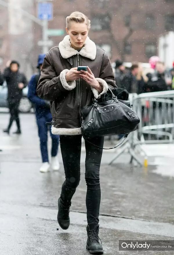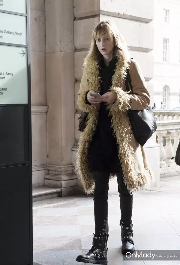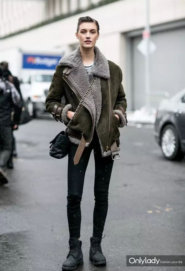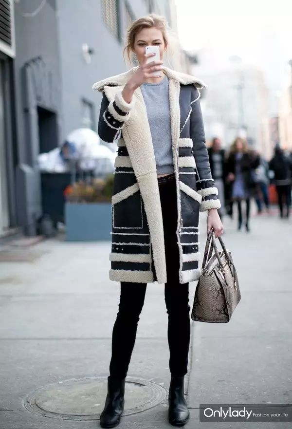 一件皮毛一体大衣上身,随随便便就能拍出帅气个性的街拍。