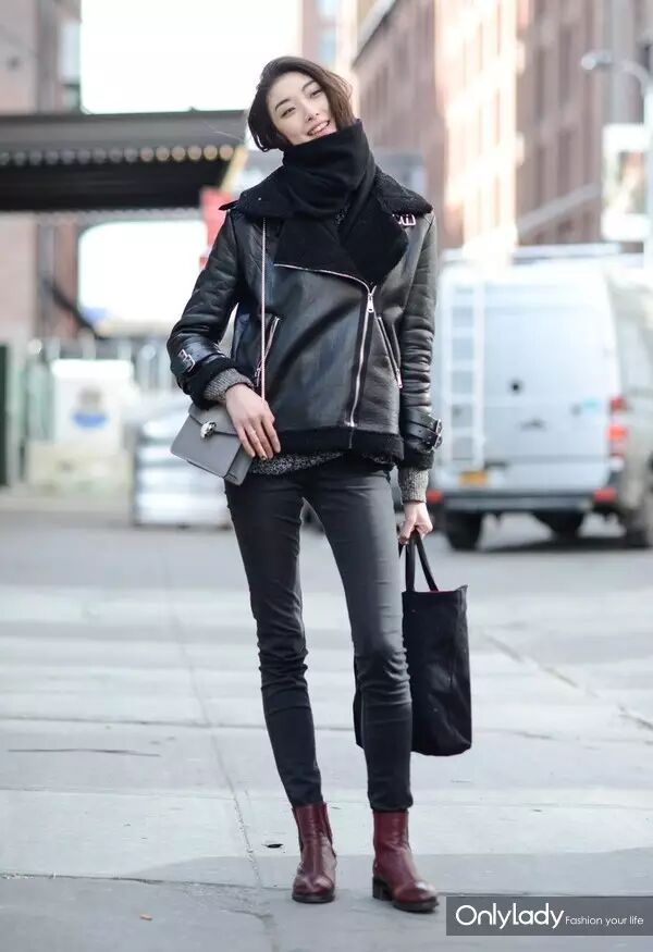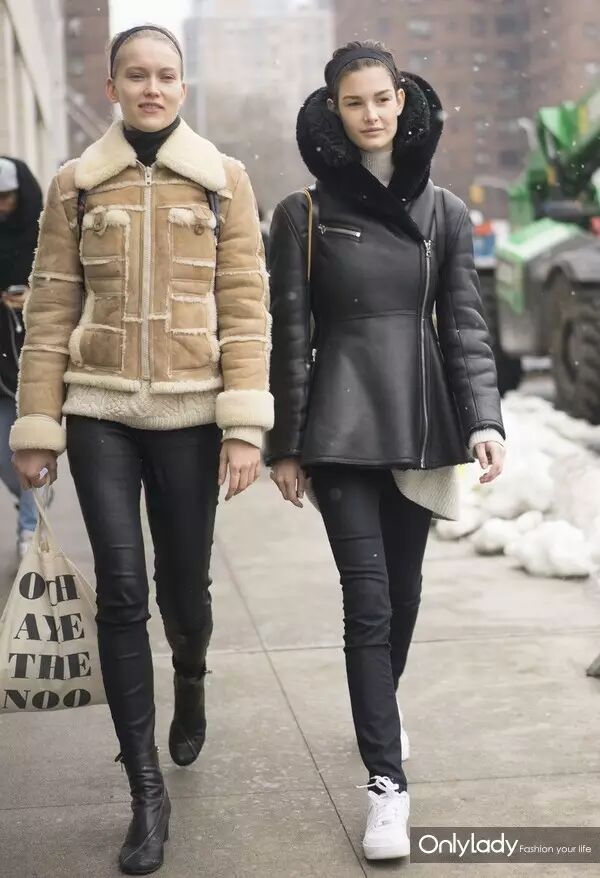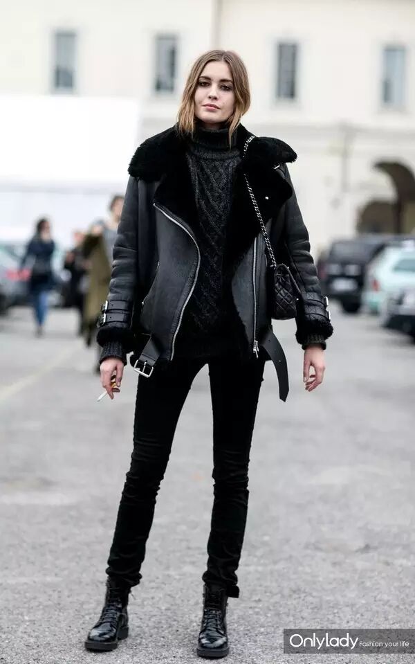 比起低调的大衣、厚重的棉服,皮毛一体衣即使搭配成全黑LOOK也不会无聊。
