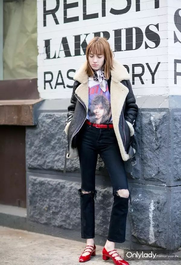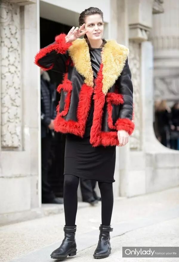 嫌弃冬天的衣服太无聊,可以选择红色的皮毛一体外套,绝对是抢镜利器。