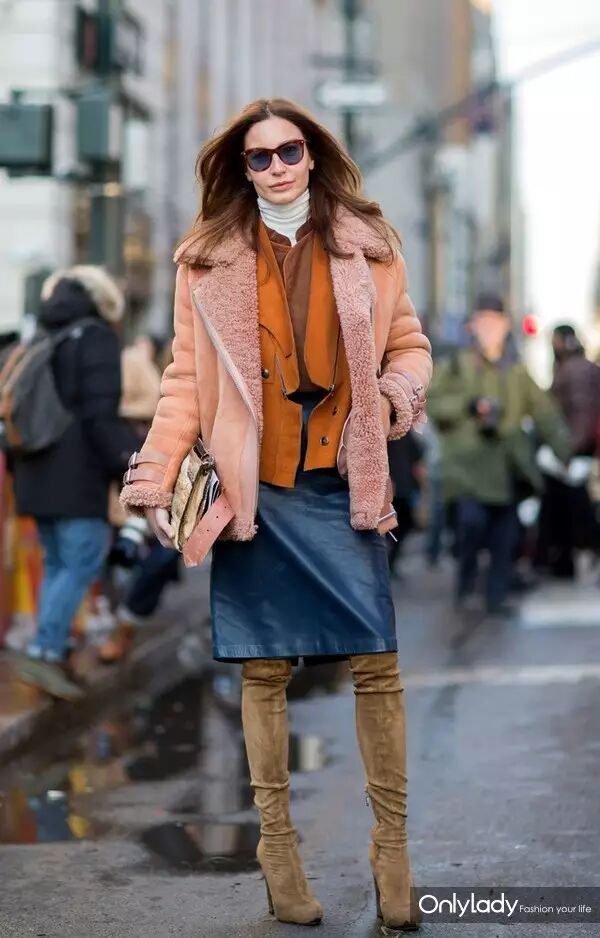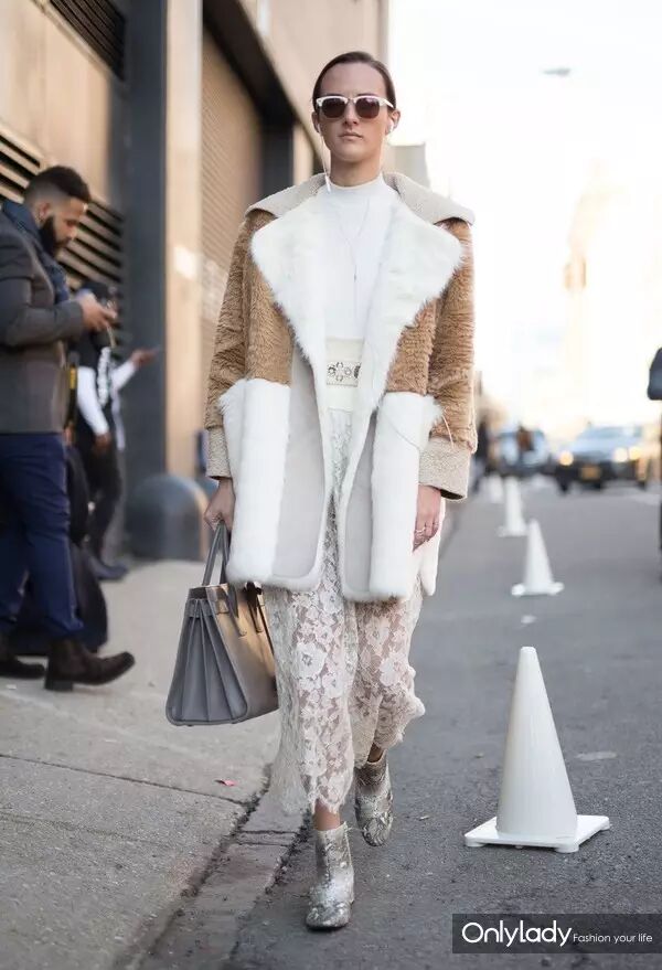 长款皮毛一体衣,竟非常适合夸张的裙裤、长裙,且会显得高雅温柔。