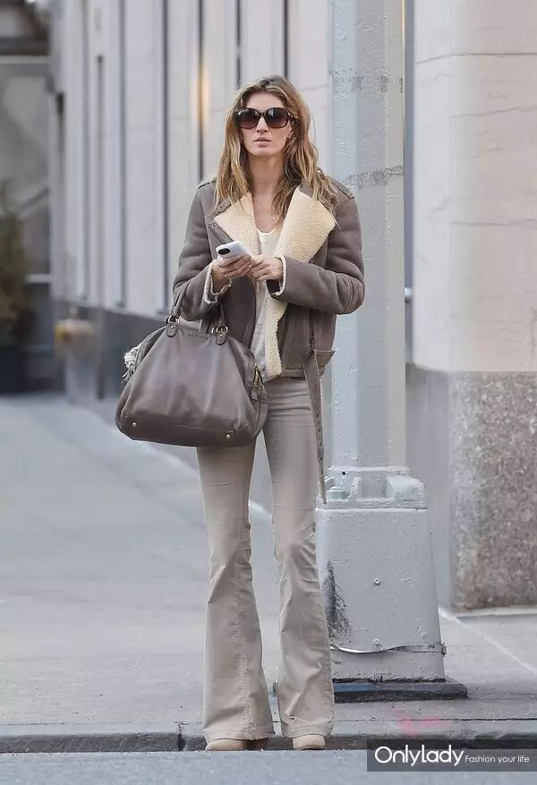 一向走甜美路线的志玲姐姐,穿上羊羔绒外套也要选择粉嫩粉嫩的颜色,搭配破洞牛仔裤和漆皮短靴,酷帅十足。