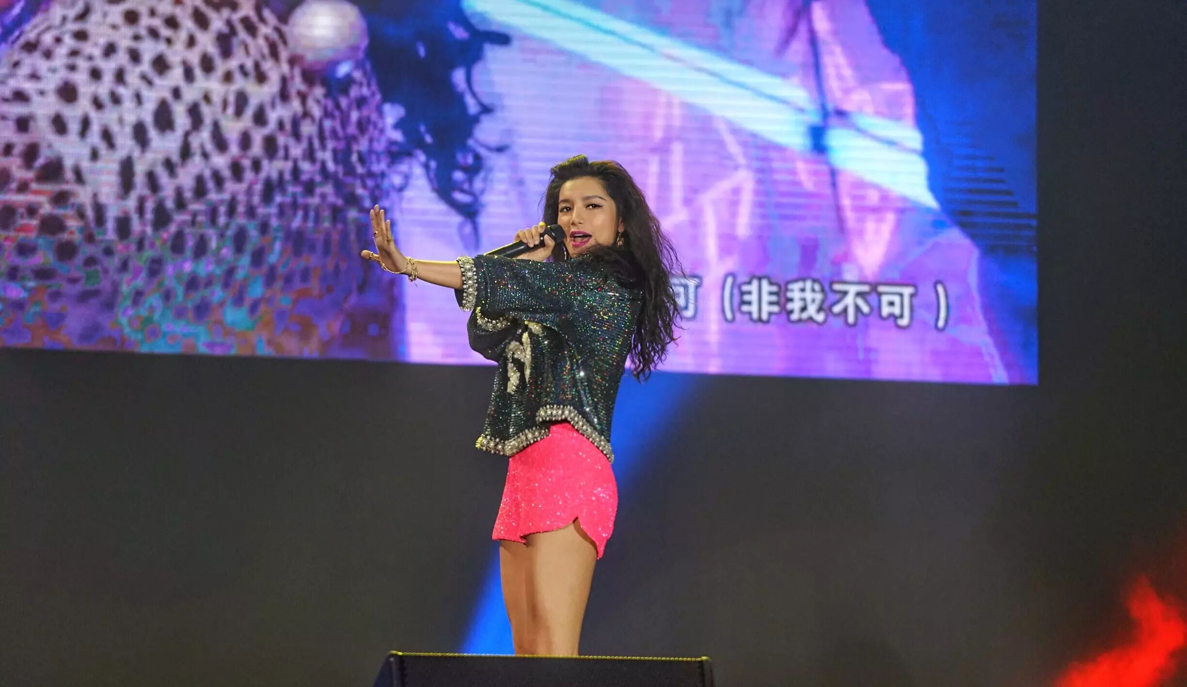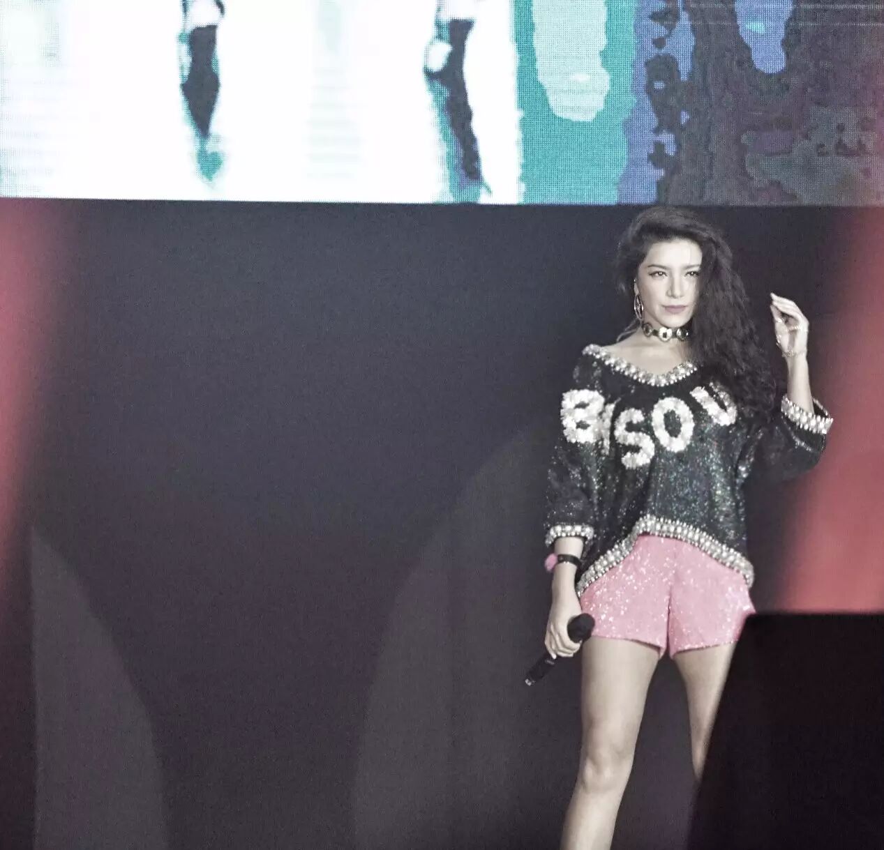 小花以一身blingbling造型闪亮登场,带来快节奏的《武装》《野》《ego》舞台,稳步活力的舞台表现赢得了全场热烈掌声及高呼,将气氛推向高潮。