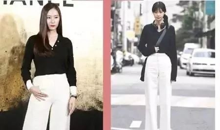 郑秀晶总是给人冷艳的感觉,她曾说自己没有亮色的衣服,看得出黑白色是她的真爱了。白色阔腿裤气势十足,我们总觉得白色会显胖,其实只要选对了款式就不会有这种问题了。高腰裤修饰臀部线条,还能显高,利落的白色西裤有着横向纹理,为职业风加上了不一样的气质。黑色衬衫也用白色纽扣和袖口做了呼应,上活动完全不输彩色穿搭的艳丽。白色西装裤也能穿出休闲的感觉。黑色长款衬衫留出一半的衣摆,搭配上一双帆布鞋,利用宽松的裤脚来打造长腿比例。