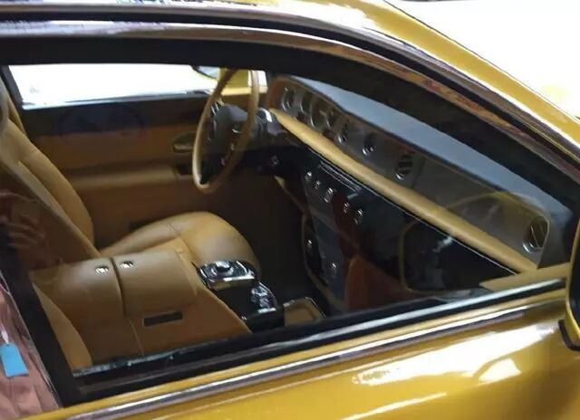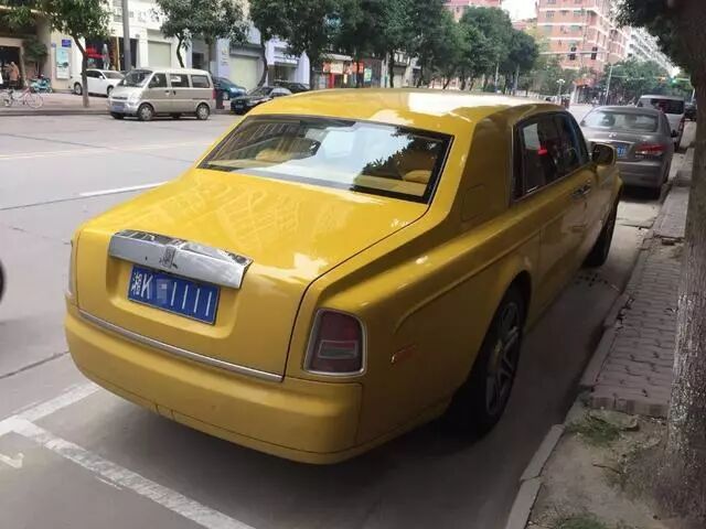 这是一台颜色特别的劳斯莱斯,由内饰到外饰全部都是黄颜色,而车主就是《老鼠爱大米》的歌手杨臣刚,车子上的都是湖南牌照,但是杨臣刚是一位湖北人,难道是因为他在湖南做生意才上的湖南牌照。