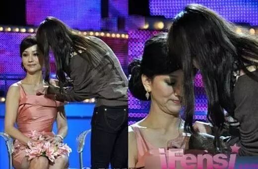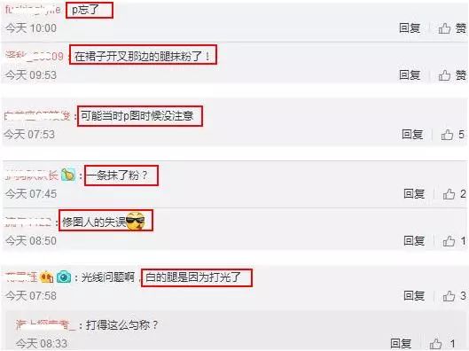 哦~~~有网友说是因为裙子是左边开叉的,所以左腿化了妆抹了粉。。还调侃说:我都快相信她和别人拥抱。对方西装肩膀被蹭白的料了。。。