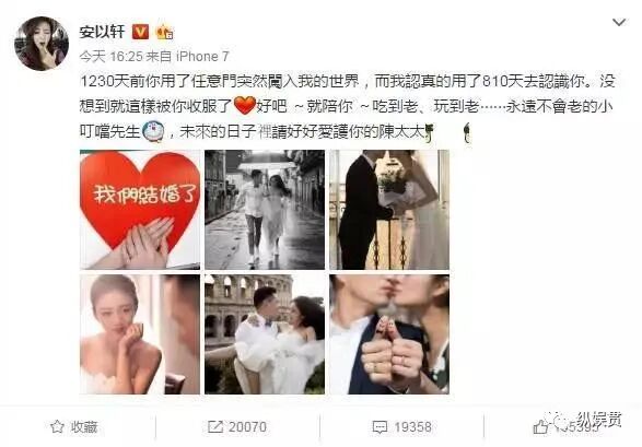 终于到在2017年,36岁的安以轩收获了自己的幸福,在微博高调宣布了自己的喜讯,老公是澳门超级富豪CEO陈荣炼。
