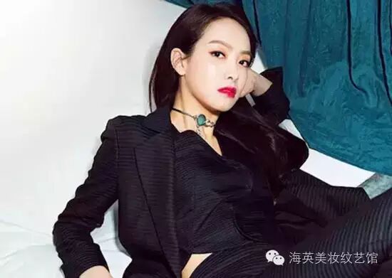 略粗的眉形在眉尾处自然的延伸,勾勒出极细线条,让中性眉形散发出一丝女人味,贵族的典雅大气显露无疑。一身黑的装扮配上大红唇做点缀,完美的刚刚好!