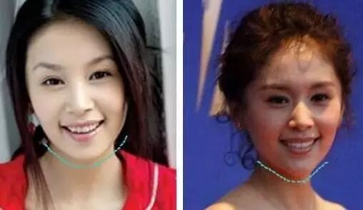 再就是面部轮廓,其实,让她变美很多,却又不宜发觉的就是脸型。和早期剧照相比,下颌的线条变化很明显。 再看正面,几乎一致的角度,同样的笑容,是不是看起来下巴变尖了?