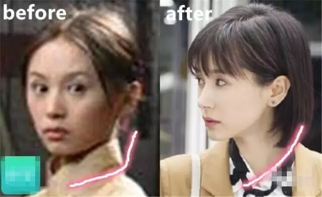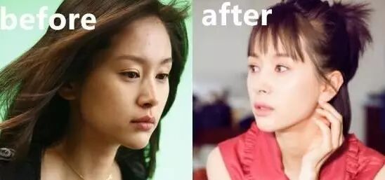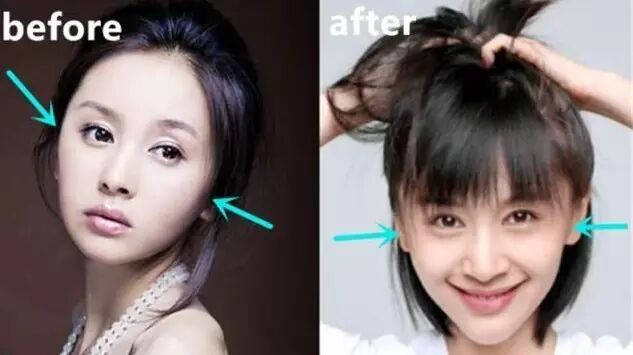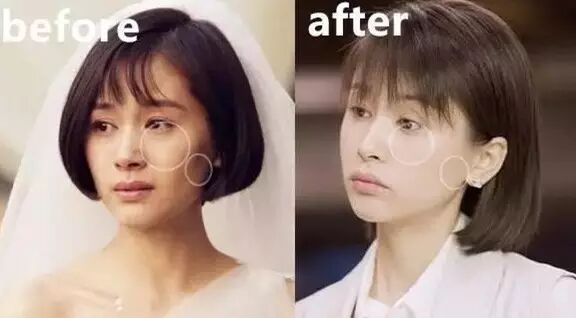 她一直被刘海遮住的额头其实也有变化。以前额头轻微凹陷,有点苦情。现在非常饱满,这样的面相才适合演富家女嘛~整个面部嘭起来了,是不是少女很多?萌萌哒!