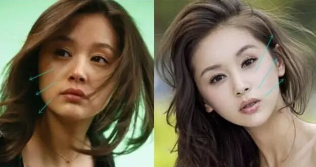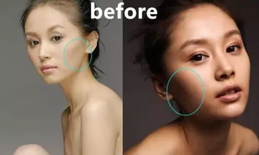 之前宽颧弓,现在都变得平滑。