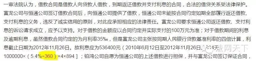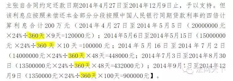 二、一种观点认为÷360,笔者持有此观点,理由有以下五个理由(其中一个理由是王法官自己作为合议庭的案件也是同意的,怎么可以反水呢)