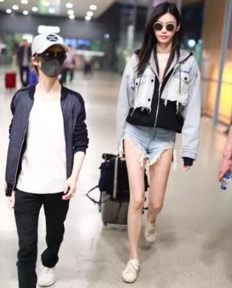 不过,郭敬明虽然身高上有劣势,但气场非常强大,黑超遮面带着口罩走在最前面,而奚梦瑶在后面跟着独自拉着行李箱,好像郭敬明的助理一般。