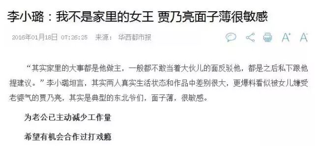 很久以前,还没掰的时候,李小璐提到过,表面上她是女王,其实家里的大事都是贾乃亮做主,他面子薄,很敏感,一般都不敢当着大伙儿的面反驳他,都是私下聊。