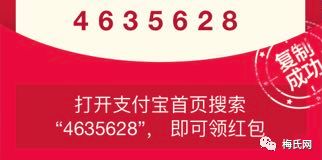 打开支付宝首页搜索“4635628”,在下面会出现个快捷功能,直接点击【搜索“4635628”,天天领红包】即可拿两个红包,使用后你可以获得两份赏金。记得每天都可以领一次!