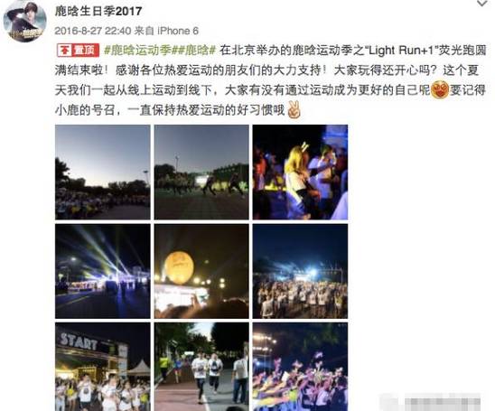 她们还组织了鹿晗运动季荧光跑活动,据说很多粉丝还专门从其它城市打飞的过去参加!