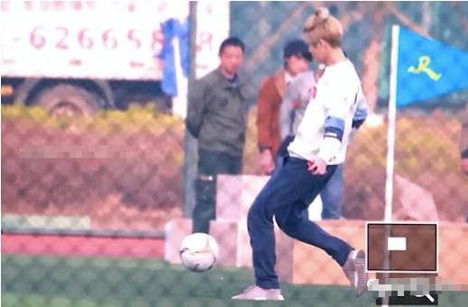 最近,还有网友捕捉到他在大连录制《跑男》的画面,头顶扎着小辫子,穿着运动服在踢足球。