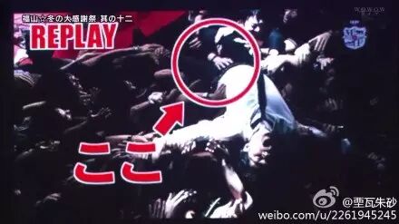 而男限场叫童贞夜。这种玩儿法,据说来自福山老师的切身体会,在拍摄《GAME》这首歌的PV时候,有一个福山桑跃下舞台被男粉丝接住的镜头,而如下图,看看他受到了什么待遇: