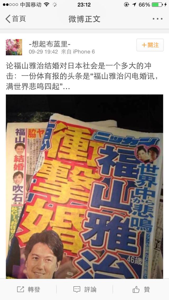 福山桑前几天在女朋友吹石一惠的生日当天公布了结婚的消息,从而导致日本举国停摆,家庭主妇心碎不已的消息大家想必已经知道了,福山也一跃成为内地网红遍布微博微信营销号,我国网友也是一片哀嚎,这嚎叫声漂洋过海,还上了霓虹的电视。