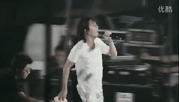 福山桑每次开演唱会都有一个保留曲目《追憶の雨の中》,一边唱一边往台下观众席洒水,09年的巡演上身后的工作人员没跟上脚步,一使性子把水倒在staff头上咯。