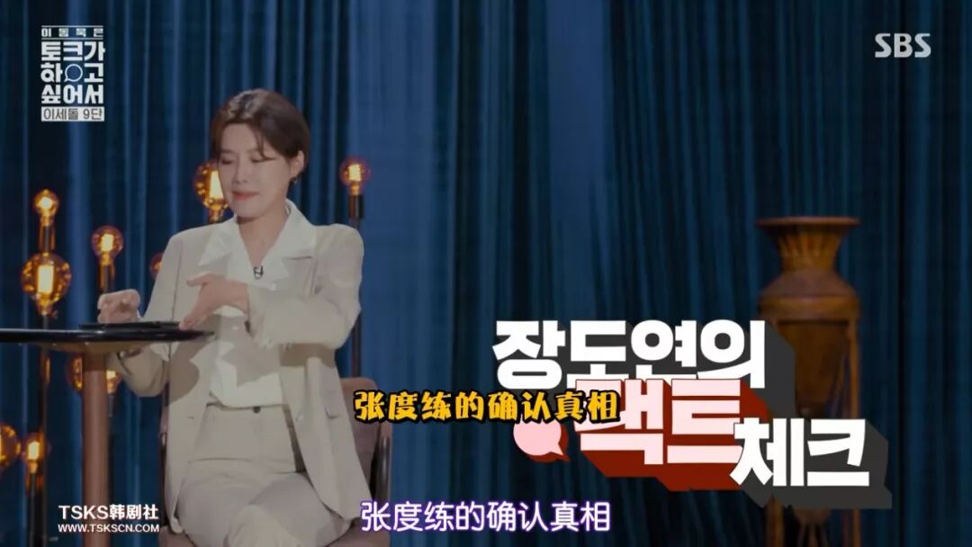 如果只是传统地一问一答,那么这跟以往的棚内访谈类节目并没有不同,但《李栋旭想要Talk》之于访谈类节目比较有价值的地方在于,它在保留棚内访谈节目的专注度、集中度和现场感的同时,为访谈类节目做了不少创新性的尝试。首先,节目中有一个辅助主持人——韩国知名的搞笑女艺人张度练。访谈类节目有副MC挺常见的,主MC负责穿针引线、把握全局,副MC负责活跃气氛、插科打诨。《李栋旭想要Talk》则是为张度练专门设置了一个环节,叫“懂新闻的女人——张度练的确认真相”。张度练翻阅关于访问对象的相关新闻和网友留言,提炼出几个八卦问题进行访谈,或打破困惑,或打破报道中的偏见,或满足观众的意愿。比如第一期中“死鬼CP”重现剧中经典的并肩穿过隧道的造型,就是来自这个环节。李栋旭的提问是偏“正”,张度练的环节则以八卦为主,二者刚好可互补,转换提问视角也让节目的节奏有所变化。