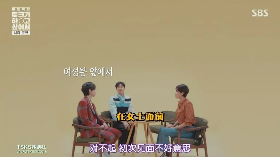 再则,节目有一个“情境访谈”环节,这是棚内访谈之外单独录制的。这一环节是“为了多方面分析人物,设定戏剧性的情况,引出嘉宾本心的最前沿的聊天”。它有点类似于小剧场,让李栋旭、张度练和访问对象在一个情境中扮演某类角色,利用张度练进行情境提问,可以非常自然地触碰到一些比较私人性的话题。像孔侑这一期,设置的情境是相亲场景,张度练与孔侑、李栋旭相亲。张度练就问了孔侑、李栋旭不少感情问题,比如遇到心仪对象是否会立即告白、有没有在凌晨时刻给前女友发过短信,等等,充分满足吃瓜群众的好奇心。情境访谈环节。