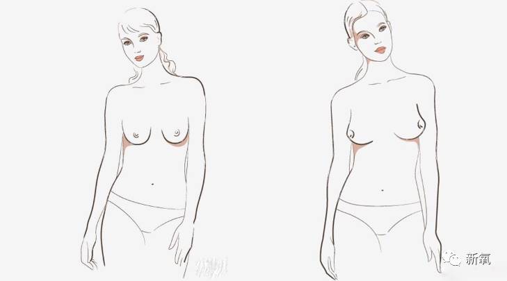 首先说一下,每个人都有原本的胸型,隆胸应该根据自己的基础选择相应形态的假体,发挥本来的弧度之美。一般亚洲女性常见的4种胸型如下图所示:(左)圆型、(右)扩胸型。