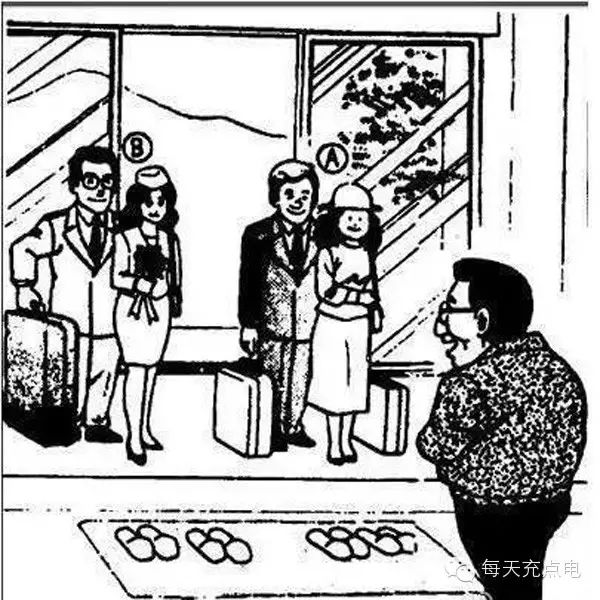 旅馆来了两对夫妇。其中一对是名符其实的夫妇,另一对是杀夫外逃的通缉犯和其情夫。由于旅馆已收到到通缉令,所以早有警惕。不巧,通缉照片不清楚,无法辩别哪一对是罪犯。但是,出来迎接的店老板只注意到了一点,便知道哪对是罪犯了。你看出破绽了吗?